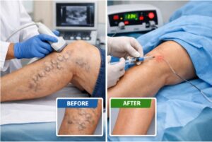 What it does: A thin fiber goes inside the refluxing vein (often great or small saphenous). Laser energy gently closes it, rerouting blood to healthy veins.
